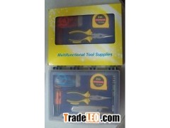 Tool set 7 pcs: (1) Hand pressing Dynamo flashlight (2) Multi-function screwdriver (3) Pliers (4) Tape Ruler (5) Cutting Knife (6) Test electric pen (7) Plastic gift boxes gift box size:258x190x45mm N.W:0.66KG/set, QTY:30 PCS Business Home Tool set